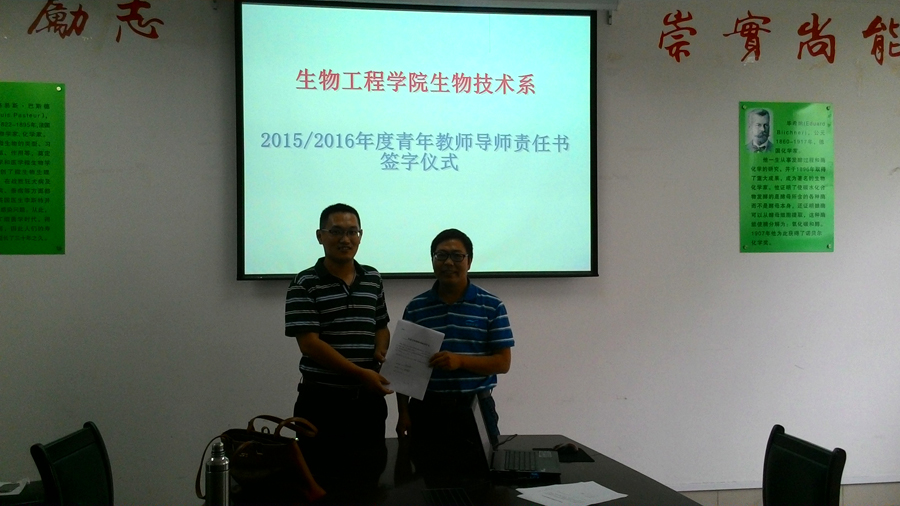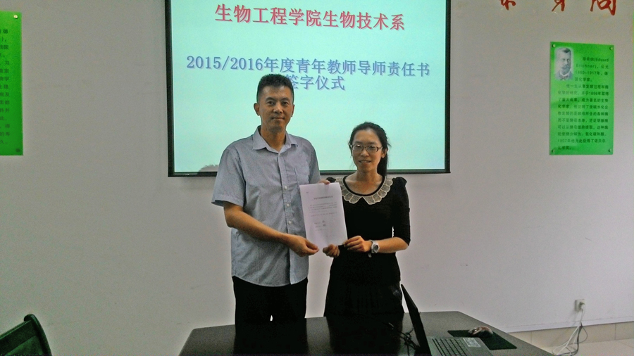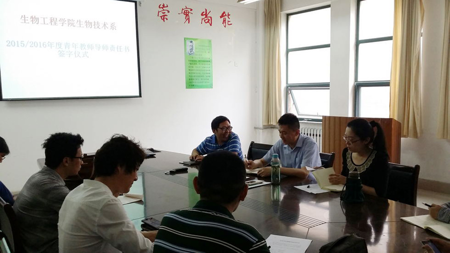 生物技术系注重青年教师的培养,举行了导师责任书签订仪式;并请新进教师做了学术报告,对青年教师未来工作计划进行了讨论,帮助青年教师快速发展。