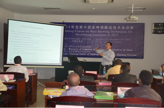 为提高教学质量加强国家培训的水准,还特别安排了德国Doemens啤酒学院的Bluemelhuber博士,美国酒花专家Patrick Ting 博士为学员授课。培训班采用全英语授课,我校授课教师聂聪、崔云前、董小雷、张浩军和宋扬老师认真备课,顺利的完成了本次培训工作,受到了各国学员的一致好评,同时对我们的教学工作起到了很大的促进作用。省商务厅培训中心张庆国主任对我们的工作给予了肯定和赞许。