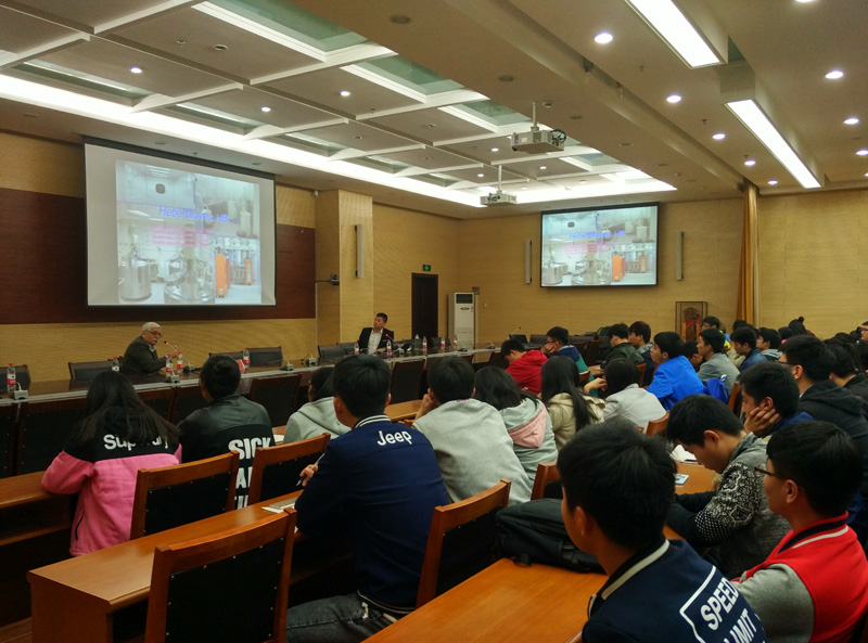 报告会上,卡洛斯首先从古巴目前的健康水平、疾病控制情况出发,点明古巴在免疫工作方面取得的成效,卡洛斯从产品的研发、专利申请、生产以及销售等方面介绍了目前生物技术发展概况。随后,他为现场师生介绍了生物技术在当代农业发展中的妙用,指出生物技术的迅猛发展大大减少了化学农药、肥料的使用,在生态农业领域取得了巨大成效,从多个方面讲解了古巴的生物技术战略。报告会结束后,卡洛斯博士与报告会现场师生分享了自己学习和在多个国家工作的经历,同学们纷纷表示受益良多。刘新利院长为卡洛斯博士颁发了“轻工学术论坛”纪念牌。