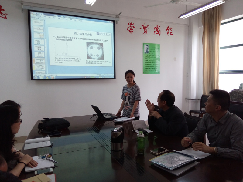 各答辩小组老师们细心检查同学们在毕业论文及设计工作存在的问题,并对同学们理解知识和运用知识的能力进行了判断,各答辩小组评定了每一位同学的成绩。在各答辩小组评定成绩的基础上,各系又进行了专业推优工作,如从2012级生物技术专业的72名学生中有3名学生脱颖而出,凭借其在毕业设计中扎实的工作,良好的论文写作水平以及在论文答辩过程中的优异表现获得了推优资格,生物技术系于6月15日在食工楼B206召开会议从三名同学中进行评选。三位同学向全系老师进行了论文现场汇报,并回答了老师提出的问题,随后经过老师进行投票表决,来自生物技术12级1班的刘欣同学获得了学校优秀论文资格。生物工程系和酿酒工程系也分别选出了各专业毕业论文(设计)相对优秀的同学。