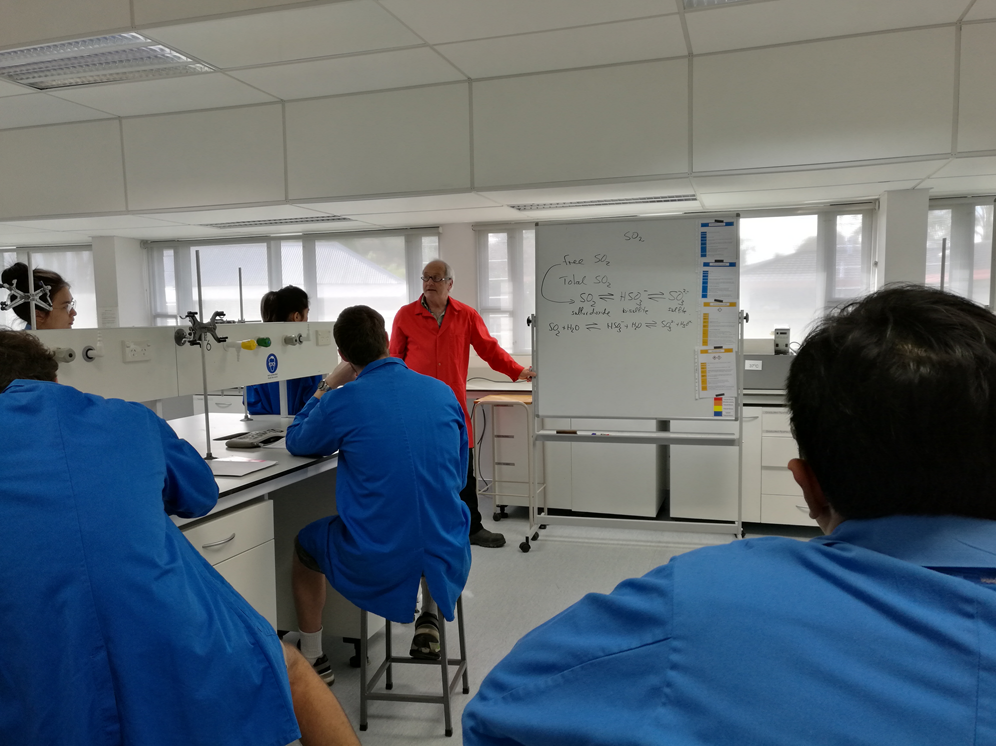 葡萄酒科学Wine Science 教师Rod Chittenden 在讲授葡萄酒生产中的各种化学变化和风味的形成