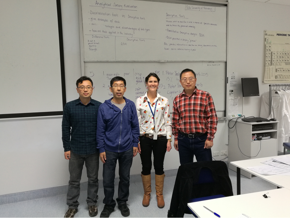 葡萄酒学院院长Diane Marshall女士向三位老师介绍了葡萄酒学院课程的基本情况之后,三位老师立即投入了紧张的学习中。主管校长Fred Koenders(Executive Dean Faculty of Commerce and Technology)与三位老师于7月27日对我们的中外合作专业酿酒工程的合作前景进行了交流。