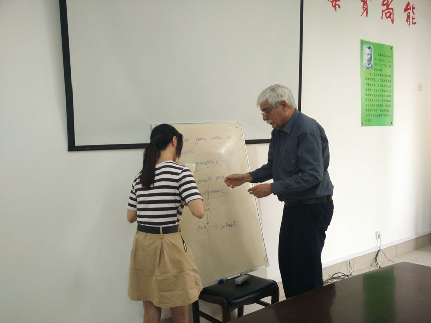 2016年7月21日,齐鲁工业大学皇冠集团游戏平台客座教授卡洛斯来校讲学,这次卡洛斯教授是受齐鲁工业大学元泰生物联合实验室邀请来校的。首先,作为联合实验室的高级顾问,卡洛斯教授对联合实验室的工作计划和进展进行了了解;然后,听取了实验室部分人员的实验汇报,并逐一进行了讨论。卡洛斯教授的严禁精神深深感动了每一位青年博士和研究生们,大家均表示从科研水平和英语水平都将在卡洛斯的指导下会有进一步的提升。