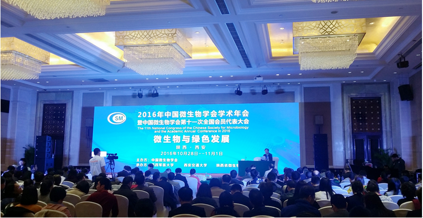 10月28日至11月1日,由中国微生物学会主办,第四军医大学、西安交通大学、陕西省微生物学会承办的“中国微生物学会第十一次全国会员代表大会暨2016年学术年会”在西安召开。中国微生物学会秘书长东秀珠研究员主持,中国微生物学会理事长邓子新院士致大会开幕辞,中国科协学会学术部副部长魏军锋先生,国际微生物学会联合会主席、新加坡国立大学李元昆教授致辞祝贺,中国疾病预防控制中心徐建国院士,厦门大学焦念志院士,中国微生物学会副理事长曲音波教授等出席了本次大会,王瑞明教授带领我院陈静老师和祝文兴老师参会。
