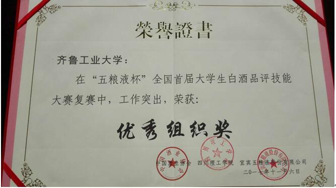 11月17-18日,我院侯周超、刘欣同学赴上海参加了全国大学生白酒品酒技能大赛决赛,济南趵突泉酿酒有限公司对济南赛区及济南赛区进入复赛、决赛的学生进行了大力资助。在整个大赛过程中,中国酒业协会、山东白酒协会分别授予齐鲁工业大学优秀组织奖,中国酒业协会授予马美范为优秀指导教师。
