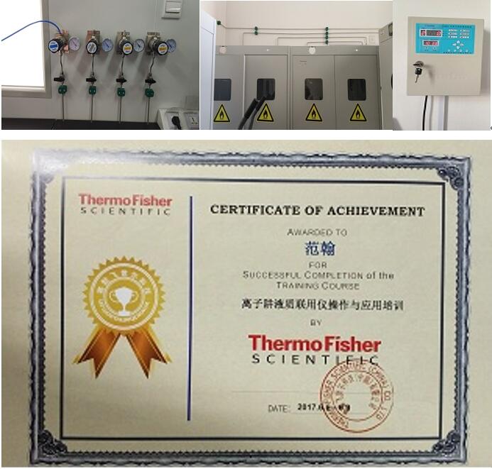2017年度组织仪器培训讲座4次,如凝胶成像分析仪、双向电泳仪、微量分光光度计的安装及使用培训等。2017年6月范翰老师参加了上海赛默飞世尔科技公司举办的离子阱液相色谱-质谱联用仪进阶培训,培训内容有离子阱液质联用仪的基础理论、Tune软件、校正、仪器硬件维护、定性及定量数据处理,并被授予结业证书。