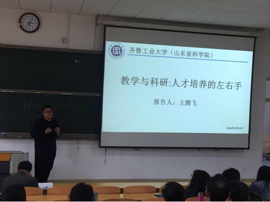 最后,学院优秀教师王腾飞老师针对如何更好的协调教学与科研的关系这一主题,结合自身多年教学科研实践经验,做了题为“教学与科研:人才培养的左右手”的报告,向到会教师分享了宝贵的经验。