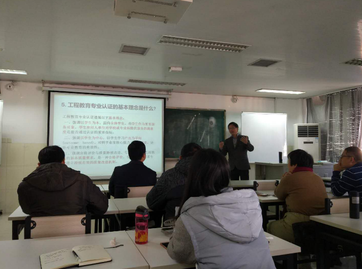 会上汪钊教授为参会老师讲述了工程教育专业认证的重要性,即通过认证协会认证的工程专业,毕业生学位将得到《华盛顿协议》其他组织的认可,将会极大提高专业的国际知名度、影响力和竞争力,同时,也细致全面的分析和讲解了认证的整个流程及需要关注的重点,指出“以学生为中心,以产出为导向”认证核心理念。