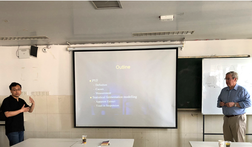 5月22-25日,美国拉赫尔(Rahr)制麦公司酿造与研发技术总监/美国酿造化学家协会(ASBC)往届主席尹象胜博士、加拿大Dalhousie大学发酵技术学院Alex Speers教授莅临齐鲁工业大学皇冠集团游戏平台,分别作了《国际啤酒行业现状与机遇》、《麦芽对啤酒风味特色及风味稳定性的影响》、《留学研究生成才透析》、《啤酒酵母絮凝面面观》、《啤酒酵母提前絮凝成因分析及监测方法》、《啤酒发酵速度与风味物质含量的相互关系》等6场学术报告,受到与会专业教师、酿酒专业学生的高度赞誉和热烈欢迎。