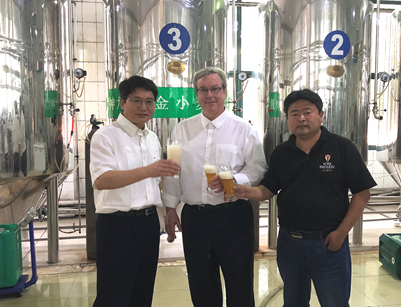 5月24日下午,齐鲁工业大学副校长任民先生接见了Yin博士和Alex Speers教授一行,对二位客座教授的技术支持表示了感谢,进一步详细商讨了建立齐鲁工业大学国际酿酒学院的具体实施方案和国际高端酿酒人才引进计划。任校长表示,一定会举全校之力,利用山东省政府大力资金支持的契机,群策群力,同心同向同行,早日把齐鲁工业大学国际酿酒学院建成世界知名的、独具中国特色的国际酿酒、科学研究和人员培训的专业机构。