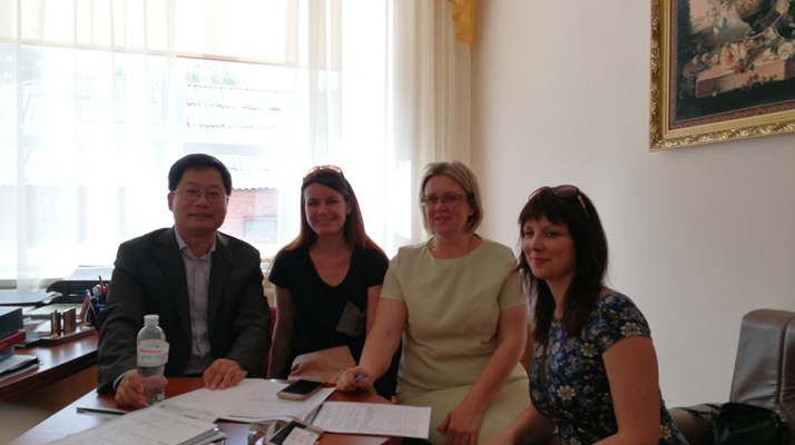 2018年6月25日至29日,刘新利院长随我校访团出访了基辅国立工艺设计大学(Kyiv National University of Technologies and Design, KNUTD),该校从1944年开始开展高等教育,前身是基辅轻工业技术学院,2001年启用现在名称,目前该学校可以在23个学士专业、20个硕士专业和12个博士专业招生。本次访问是在两校前期互访基础上的进一步深入交流。