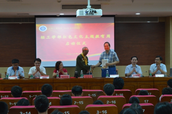 启动仪式上,赵传山为张传荣老人颁发了齐鲁工业大学轻工学部“红色文化校外讲师”聘书,张传荣老人为我校捐赠图书。左殿升宣读了轻工学部红色文化主题教育周活动安排,万金存宣读了轻工学部红色文化小讲堂主持人名单。参加活动的学生代表王凯发出倡议,争做红色文化的传承者。赵传山做总结讲话,他希望同学们认真学习红色文化,把握红色文化内涵,加强红色文化实践,做红色文化的传承者,发扬为人老实、作风淳朴、学习踏实、工作务实的求实精神,争取早日成才,报效祖国。
