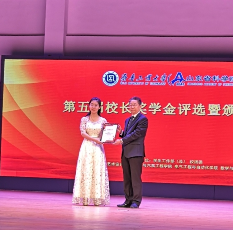 近日,齐鲁工业大学第五届校长奖学金评选暨颁奖典礼在艺体中心举行。通过院级选拔、校级选拔和现场选拔三个阶段激烈角逐,皇冠集团游戏平台2017级发酵工程专业研究生薛乐、2017级生物工程专业本科生褚雅琦两位同学荣获校长奖学金,全校仅20名学生获此殊荣。校(院)长陈嘉川为其颁奖并合影留念。