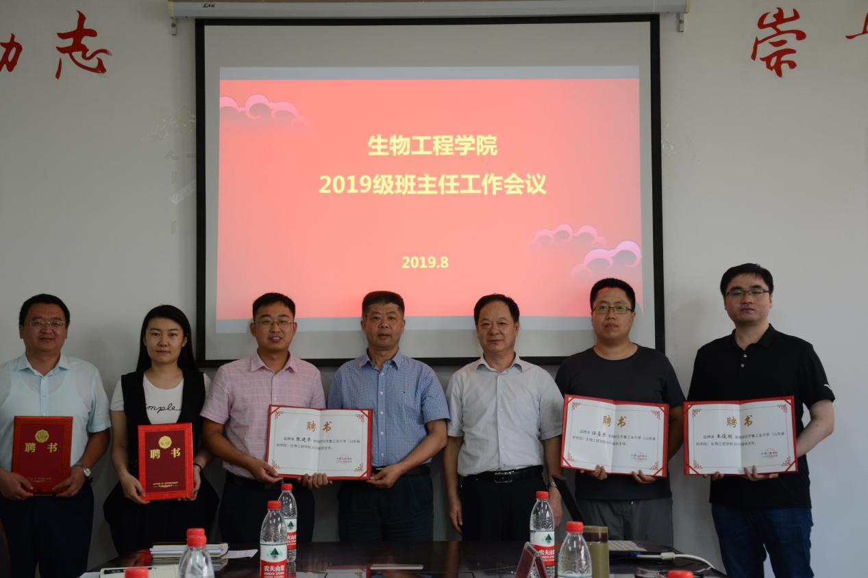 为进一步加强新生班主任队伍建设,更好地开展新学期班级建设工作,8月30日上午,皇冠集团游戏平台于食工楼B206会议室召开2019级新生班主任及班主任助理聘任仪式,皇冠集团游戏平台党委书记张召宁、院长王瑞明、党委副书记田中建、副院长李丕武、2019级新生班主任、院团委辅导员老师以及助理班主任参加了会议。