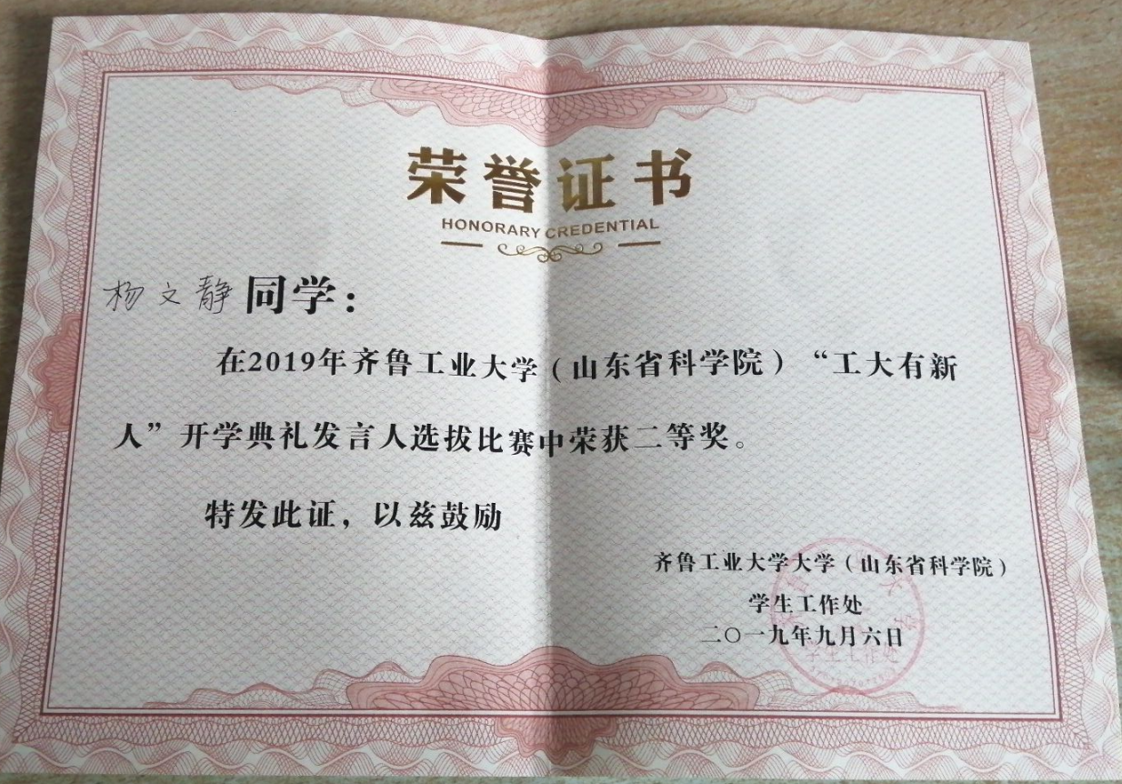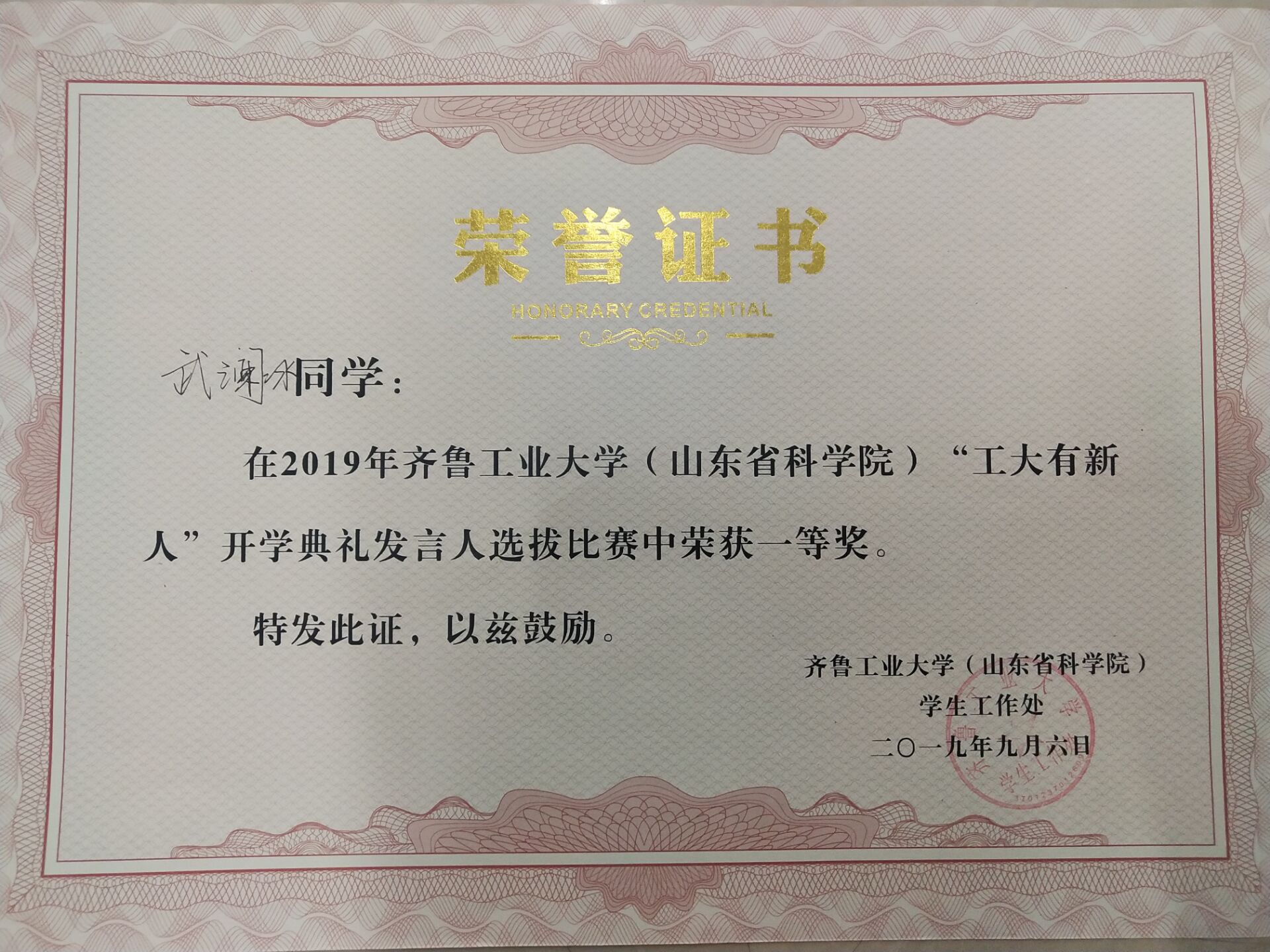 为给2019级新生搭起展现自我的舞台,增强新生对我校的认同感和归属感,由学生处主办,易班工作站承办的“工大有新人”开学典礼发言人选拔赛决赛于9月6日下午2点在图书馆五楼报告厅举行。各学院老师与学生会主席参加了此次比赛并担任评委。我院酿酒中外19-2的武斓冰同学斩获一等奖,并将作为新生代表于9月12日开学典礼时进行发言。
