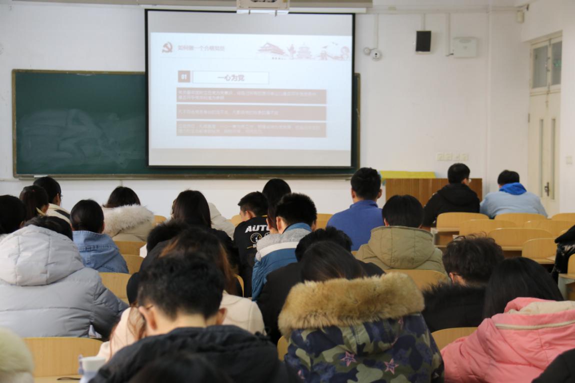 活动中,景璐和许廷强两位同学通过PPT演讲的形式分别围绕“加强学习,深入开展调查研究,全面增强执政本领”、“新时代要有新气象、更要有新作为”的主题进行宣讲交流,全体成员认真读内容,悟原理,切实把自己摆进去,从自身出发,边学边思。随后通过集中自学、研讨交流、撰写学习体会等方式,不断加深学生党员对爱党爱国精神的深层理解和把握。经过这次主题活动,大家对党的认识和感情得到了进一步加深,更坚定党的信念和对党的追求,自觉在党的旗帜下确定自己各阶段目标。