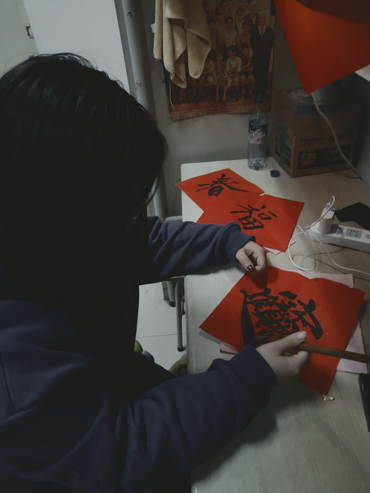 活动伊始,同学们在15号楼下集合,团委姚灵丽老师简单阐述“传承中华优秀传统文化,树立社会主义文化自信”,介绍了各种文明的发源和中华民族文明和传统文化,从各个层面以及当今国际国内形势论述了传承中华优秀传统文化的重要性,深刻阐述了文化自信的重大意义。接着请15号楼620宿舍张昊雯同学为皇冠集团游戏平台其他宿舍题字,这不仅促进了各个宿舍之间的友好关系,并且向同学们展示了传统文化的魅力,更激发了更多同学对于毛笔字的喜爱。