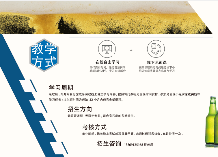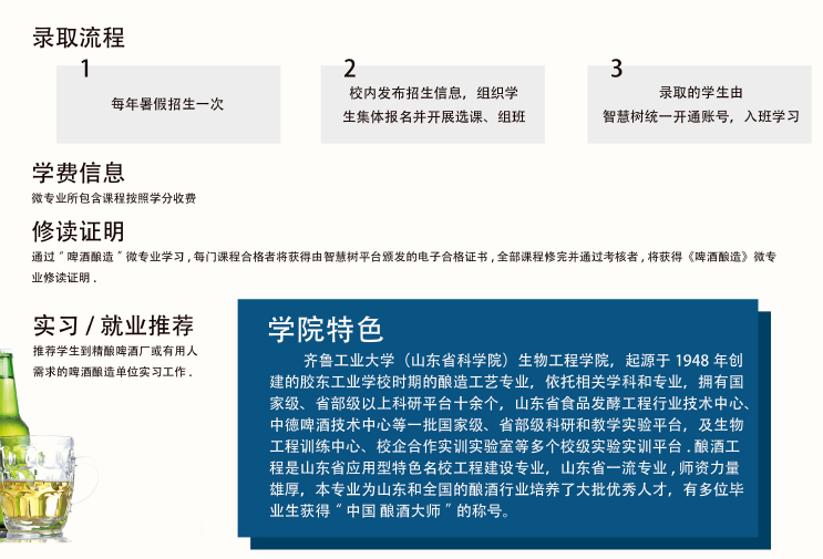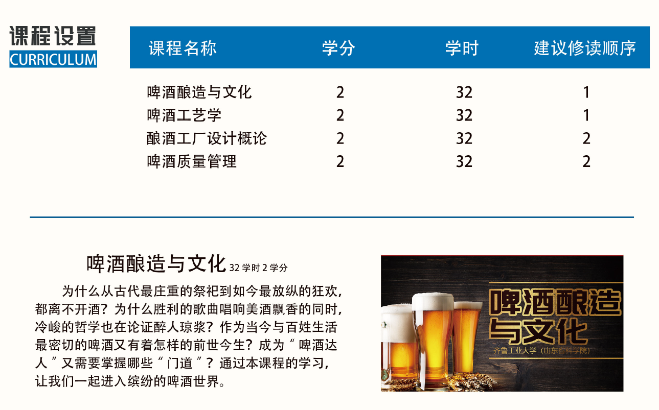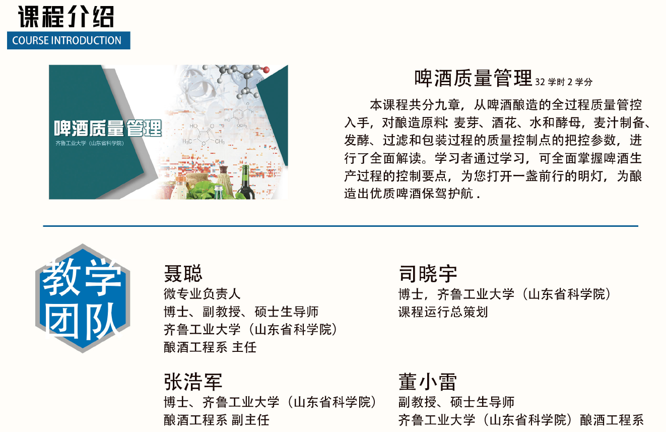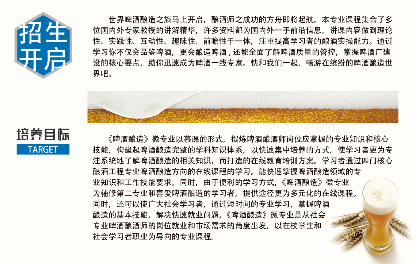 我院承担的山东省高等教育发展研究中心和山东省高等学校“长青联盟”教学改革专项《啤酒酿造》微专业课程建设项目,顺利完成课程建设正式上线,并在10所高校联盟内招生。
