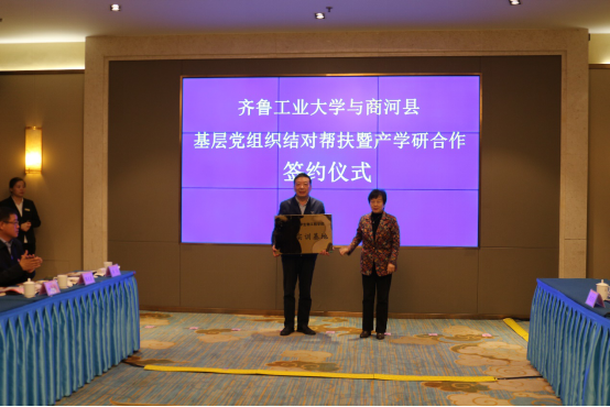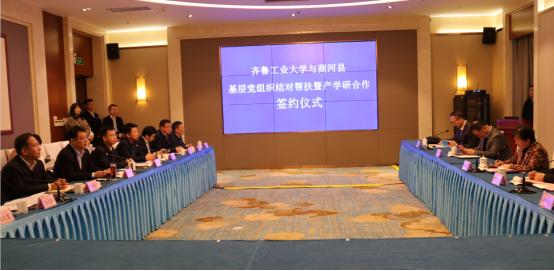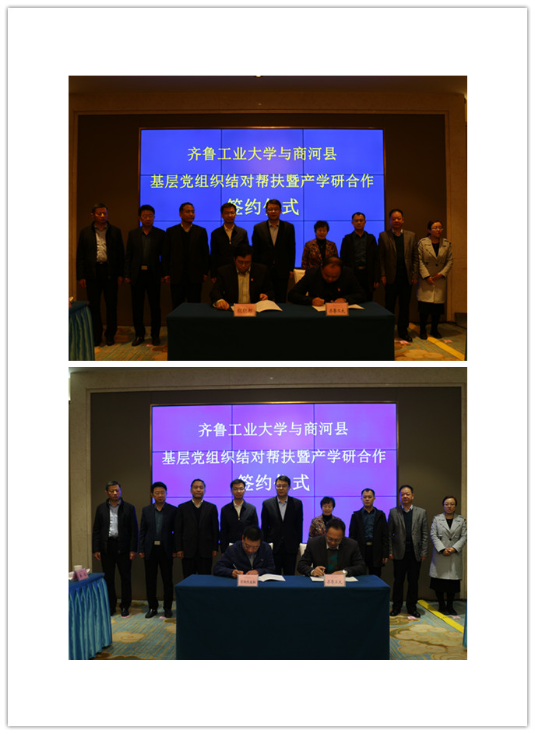 会议由商河县委副书记王磊主持。商河县委书记翟军首先致欢迎辞。翟军对齐鲁工业大学一行表示诚挚的欢迎,随后,翟军介绍了商河县的历史文化、经济社会发展情况、发展规划、人才扶持政策等,并希望,以此次共建为契机,与齐鲁工业大学进一步拓展合作领域,从组织建设互促、党员干部互动、党建载体互用等多方面展开合作,构建协同创新模式;搭建校地交流平台,将科研成果、企业科技难题和地方需求等互联互通,共同推进产教融合,推动多领域校地合作“开花结果”。随后,张洪英对商河县各位领导给予学校的关心支持表示衷心的感谢,介绍了学校的发展概况及皇冠集团游戏平台学科专业情况、科研情况、服务地方经济等方面的情况。她表示,高校基层党组织与地方党组织结对共建,是实现资源共享、优势互补,以党建推动事业发展的创新举措。许商街道、县党性教育基地能与我校皇冠集团游戏平台结对共建,充分体现了对我校的信任,将推动双方科技、教育和产业合作交流。