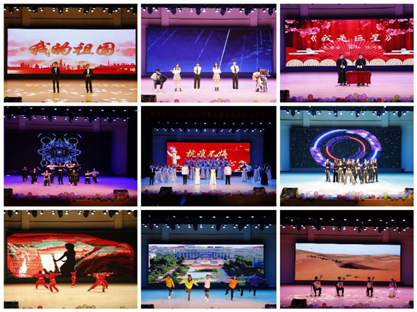 表彰会后迎新晚会在开场舞《工大制噪》中拉开帷幕。晚会以音乐、舞蹈、武术、朗诵等形式给观众呈现出一场视听盛宴。将同学们的锐意进取与积极向上充分展现给在座观众。安管处宋煊、张雨霖两位老师表演的相声《我是巨星》幽默风趣,深受大家喜爱。晚会在合唱《不忘初心》中精彩落幕。