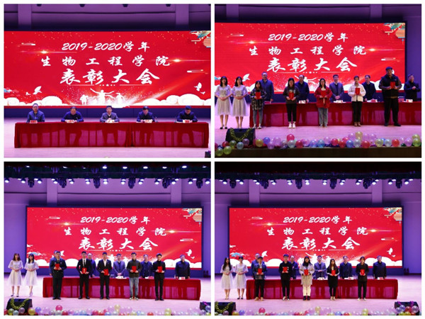 大会开始前,进行了互联网+和挑战杯省赛金奖项目展示。表彰会上学院党委副书记田中建作了2019—2020学年学院学生工作报告。他总结了一年来我院学生工作取得的成绩和进步,对疫情期间学院各项学生们的良好表现表示了肯定。学院副院长兰文军和李丕武宣读了关于表彰本学年先进集体和先进个人的决定,学院领导为他们颁发了获奖证书。院长王瑞明做了总结发言,他对优秀集体及个人表示了祝贺,随后回顾总结了学校和学院在教学、科研、师资队伍和学科建设等方面取得的显著成绩,并对同学们提出了希望和要求,号召同学们永远跟党走、奋进新时代,勇于承担新时代赋予的历史使命。