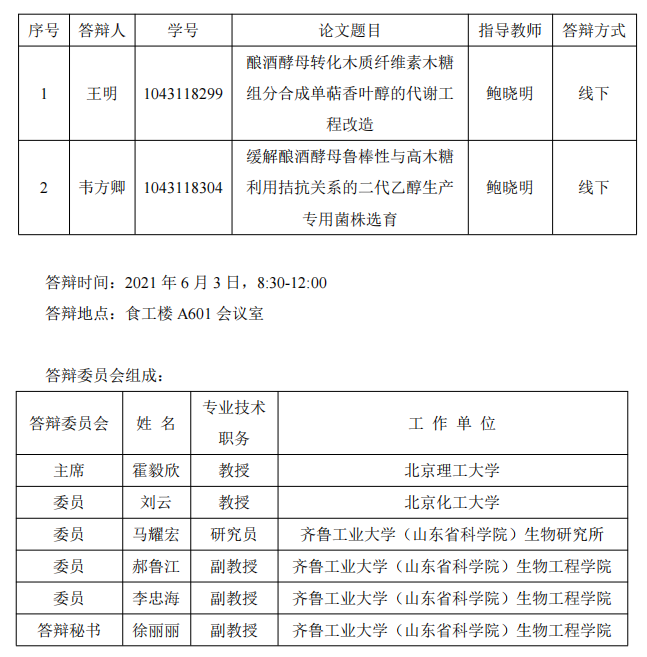 皇冠集团游戏平台 2021 届硕士研究生答辩公告一