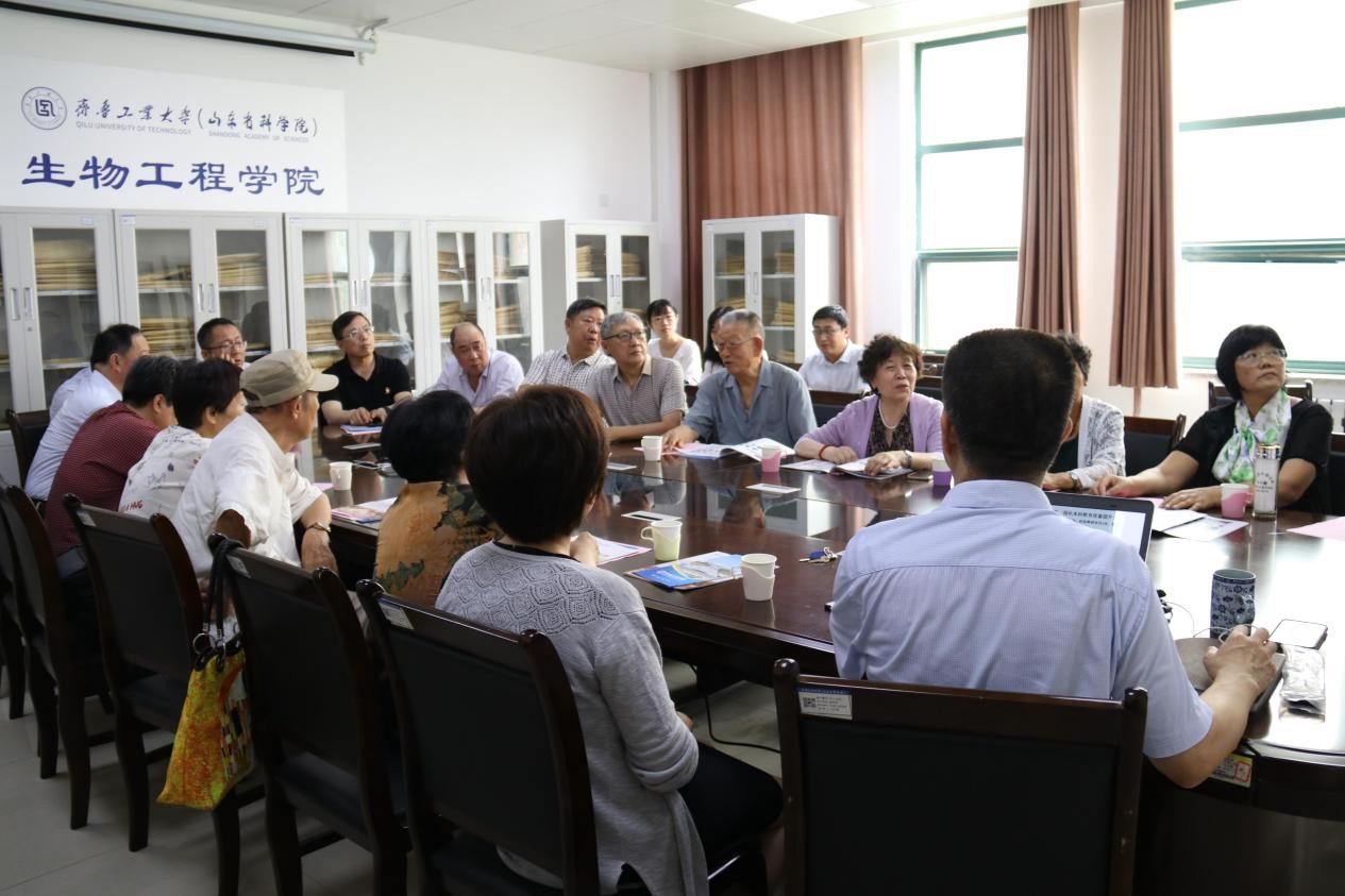 会上,王瑞明院长向老同志们汇报了学院近年来在教学、科研、人才队伍、学科建设等方面取得的成果,当谈到杨真老师获得山东省高校青年教师教学比赛一等奖、学生创新创业获得国家级奖励时,老同志们非常激动,仔细察看显示屏上的证书。座谈时,他们表达了永远听党话,跟党走的信念,向党的百年华诞表示祝福。他们深情回忆了学院不平凡的发展之路,纷纷表示,在校(院)党委的领导下学院取得优秀的成绩,他们感到自豪和骄傲,并提出教师需要爱岗敬业,要讲好每一节课,要关爱每一名学生,以真情、真心、真诚教育和影响学生,努力成为学生的良师益友,成为学生健康成长的指导者和引路人,要以不断进步的教学成绩感恩学校为自己提供的发展平台。会后,老同志们参观了学院的实验室、文化长廊和省部共建国家重点实验室。