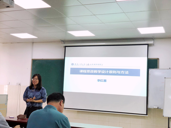 李红霞副处长首先深入的对课程思政系列文件政策进行了阐释,高校要坚持把“立德树人”作为中心环节,把思想政治工作贯穿教育教学全过程,实现全员育人、全程育人、全方位育人。接着,从课程思政的意义、课程思政的原则、课程思政的内容等方面进行了全面系统的讲解。然后,着重介绍了我校课程思政的工作实践,结合实例鼓励老师们深入挖掘理工科各类课程和教学方式中所蕴含的思想政治教育资源,积极推进课程思政建设。