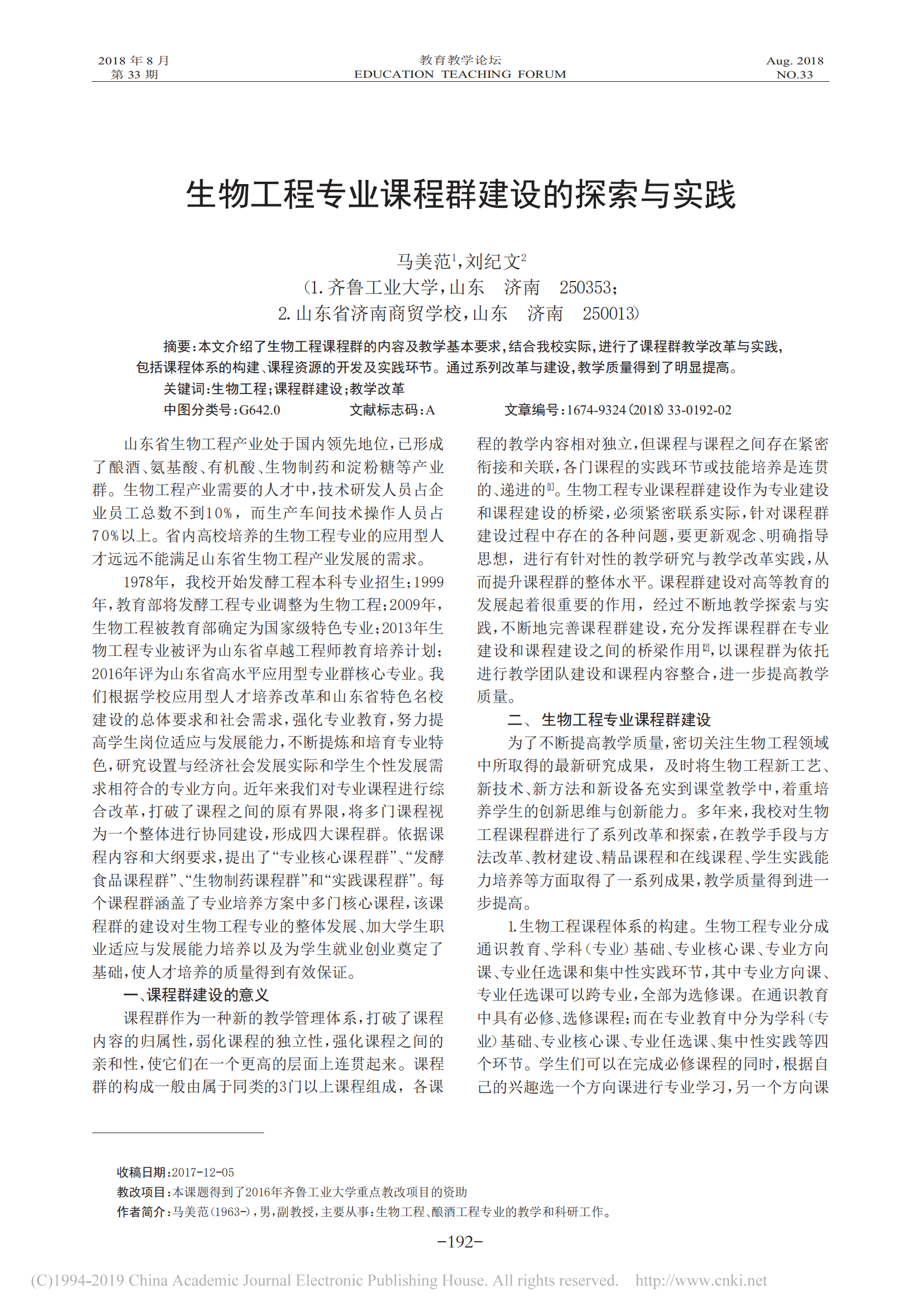 生物工程专业课程群建设的探索与实践