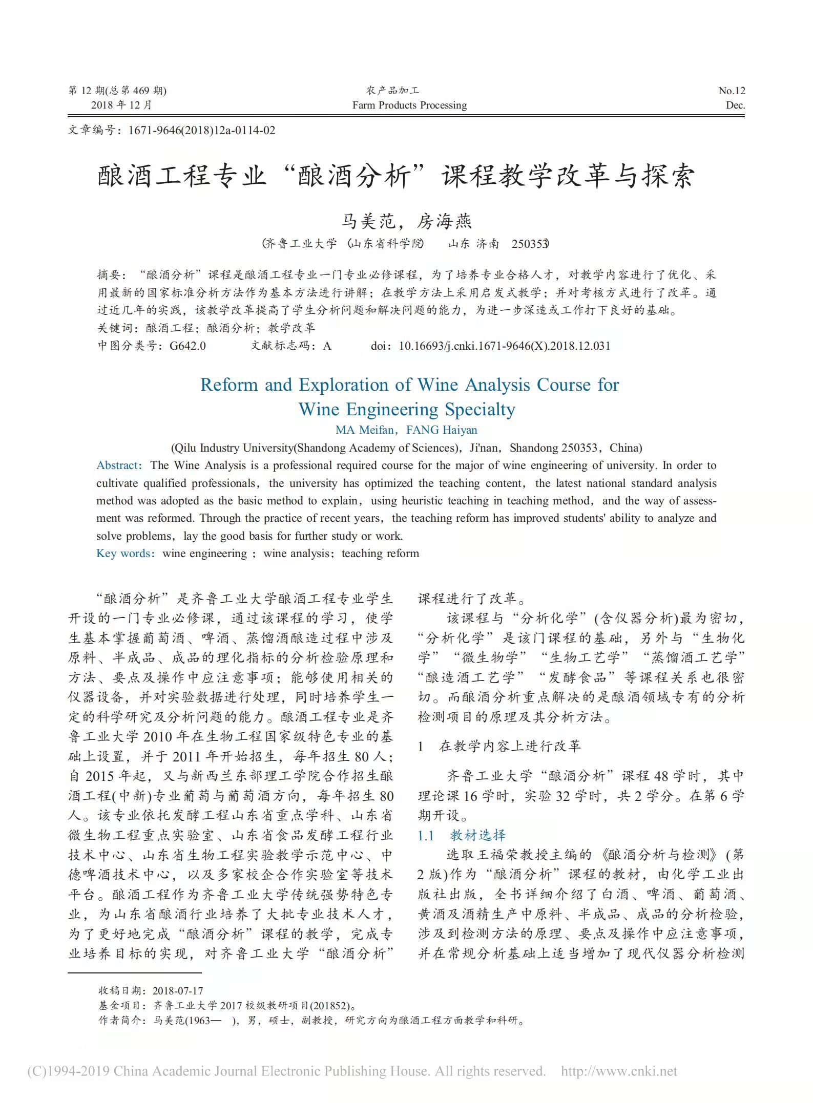 酿酒工程专业《酿酒分析》课程教学改革与探索