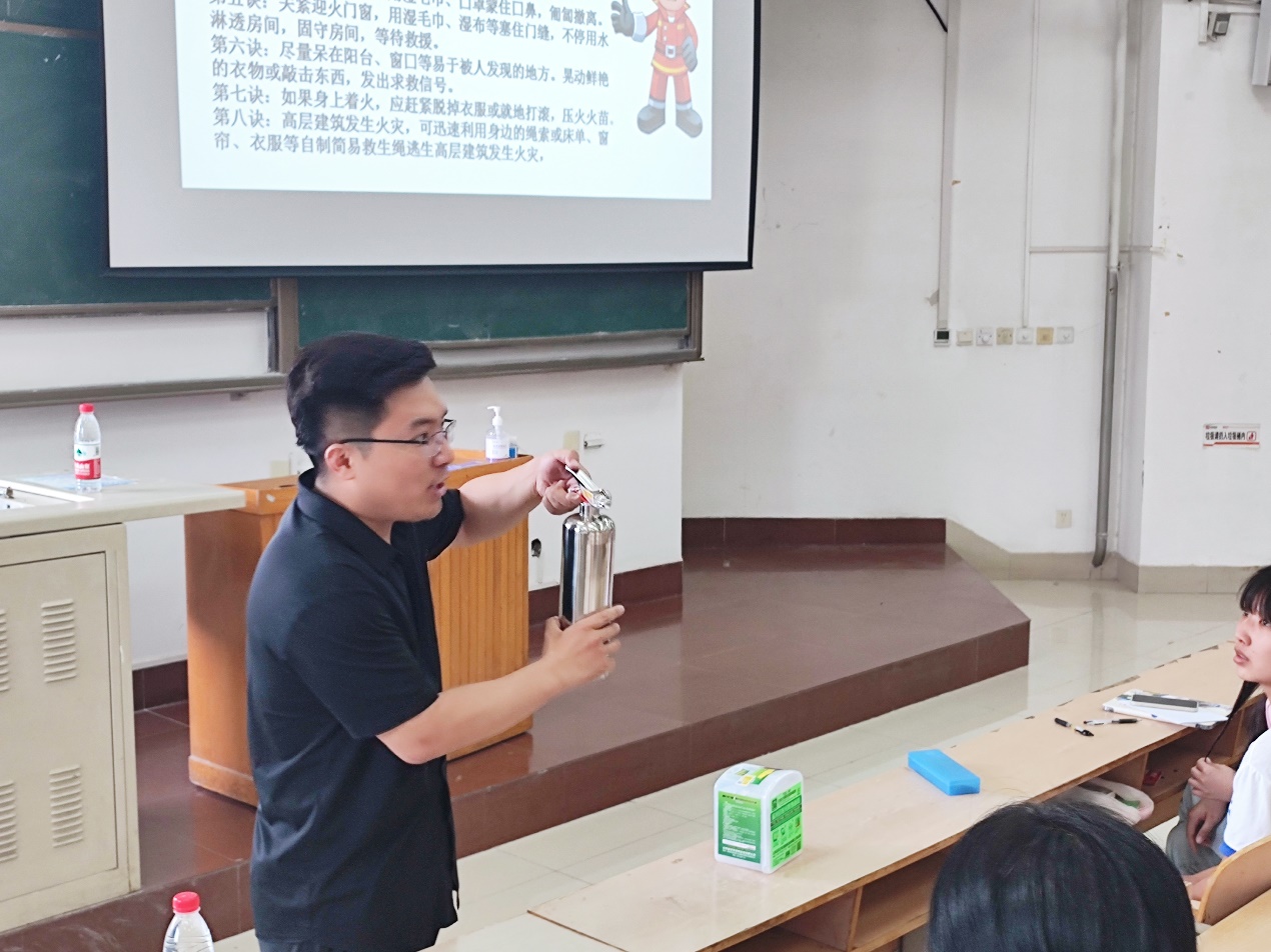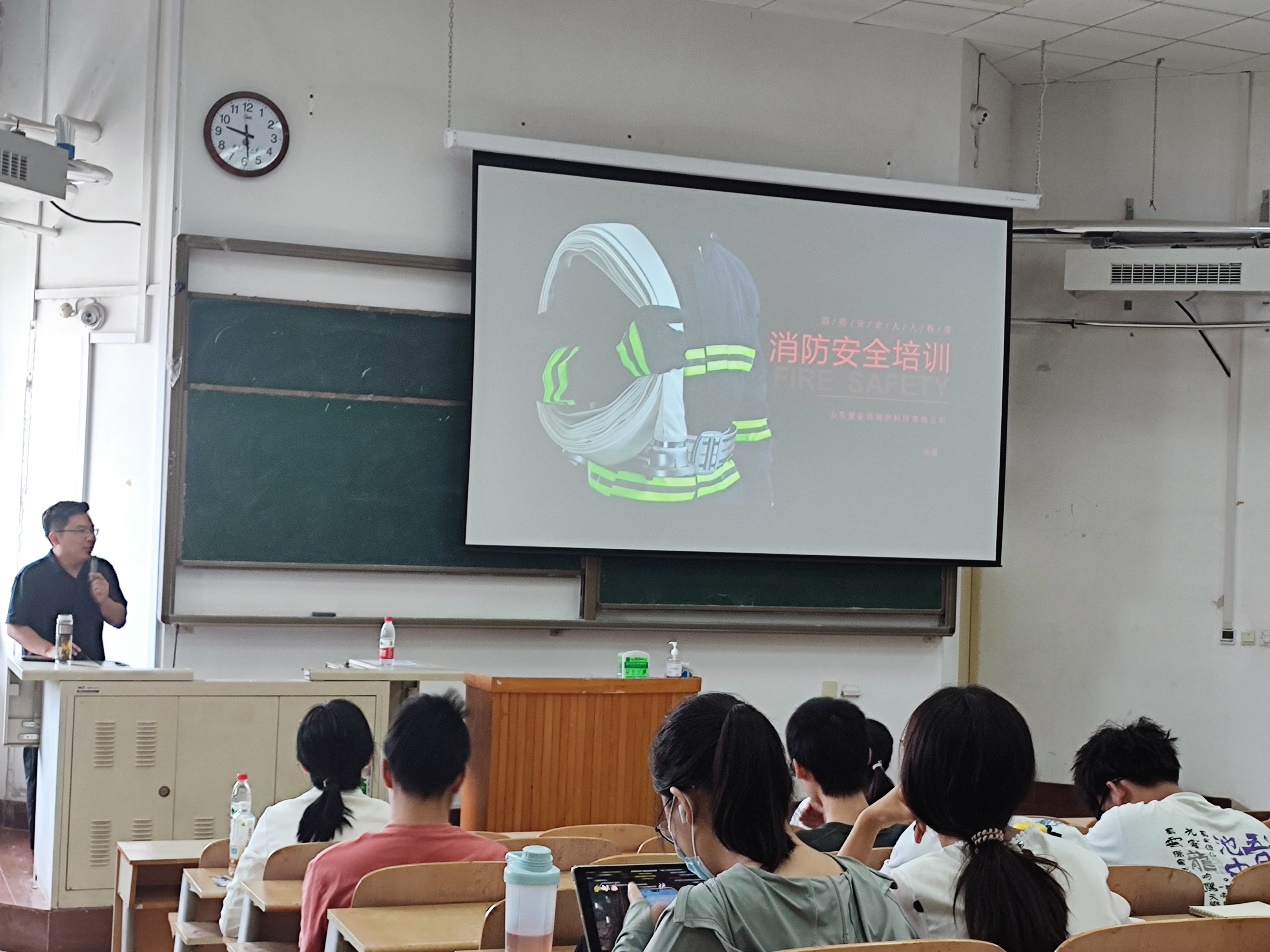 2022年6月9日,皇冠集团游戏平台21级生物工程专业安全教育通识课之行业大咖讲安全活动在2号公教楼JT403如期进行。学部有幸邀请到山东居安特消防科技有限公司董事长张雷参与此次活动。首先,张总为大家讲解了消防安全基本制度及相关法律法规,使大家形成基本消防观念。之后,张总结合亲身经历实际案例,并配合一幅幅触目惊心的图片,生动的讲解了消防安全知识。最后,张总介绍了常规消防设施的使用,并现场演示了报警器、小型灭火器的正确使用方法,同时还与同学们互动进行火场逃生技能的演示。