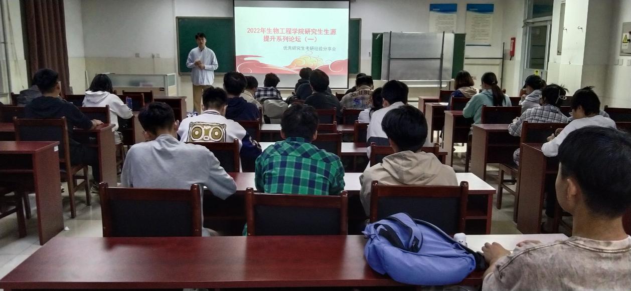 为帮助学部同学们了解考研相关事项、获取备考经验,9月23日晚,皇冠集团游戏平台研究生生源提升系列论坛(一)—优秀研究生考研经验分享会在食工楼A513教室顺利举行。