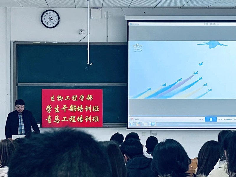 为热烈庆祝中国人民空军成立73周年,教育同学们热爱祖国、心系国防,牢固树立守护祖国蓝天的坚定信念,11月10日—11日,生物工程学部组织同学们观看空军建军宣传片,致敬人民空军。