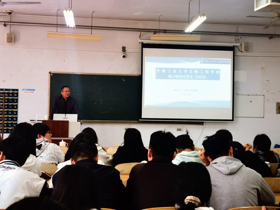 在宣讲现场,李丕武副主任与德州学院生命科学学院生物技术专业、生物科学专业的大三学生进行近距离的交流。他向同学们详细介绍了学校简介、学部概况、硕士点学科方向、导师团队、毕业生就业、招生目录及参考书目、人才培养及学科平台等情况,充分展示了我学部科研学术水平以及研究生培养的亮点与特色;并就相关招生政策和招生形势进行了分析,鼓励同学们根据个人实际情况、学术兴趣以及未来的就业前景等要素选择适合自己的方向进行报名。此外,李丕武副主任就如何备战考研给同学们提出了可借鉴的建议,他强调要明确考研动机,夯实基础,以积极的心态全力备考。会后,现场学子就招生专业、研究生培养、就业等情况积极提问,宣讲现场气氛热烈,互动频繁。