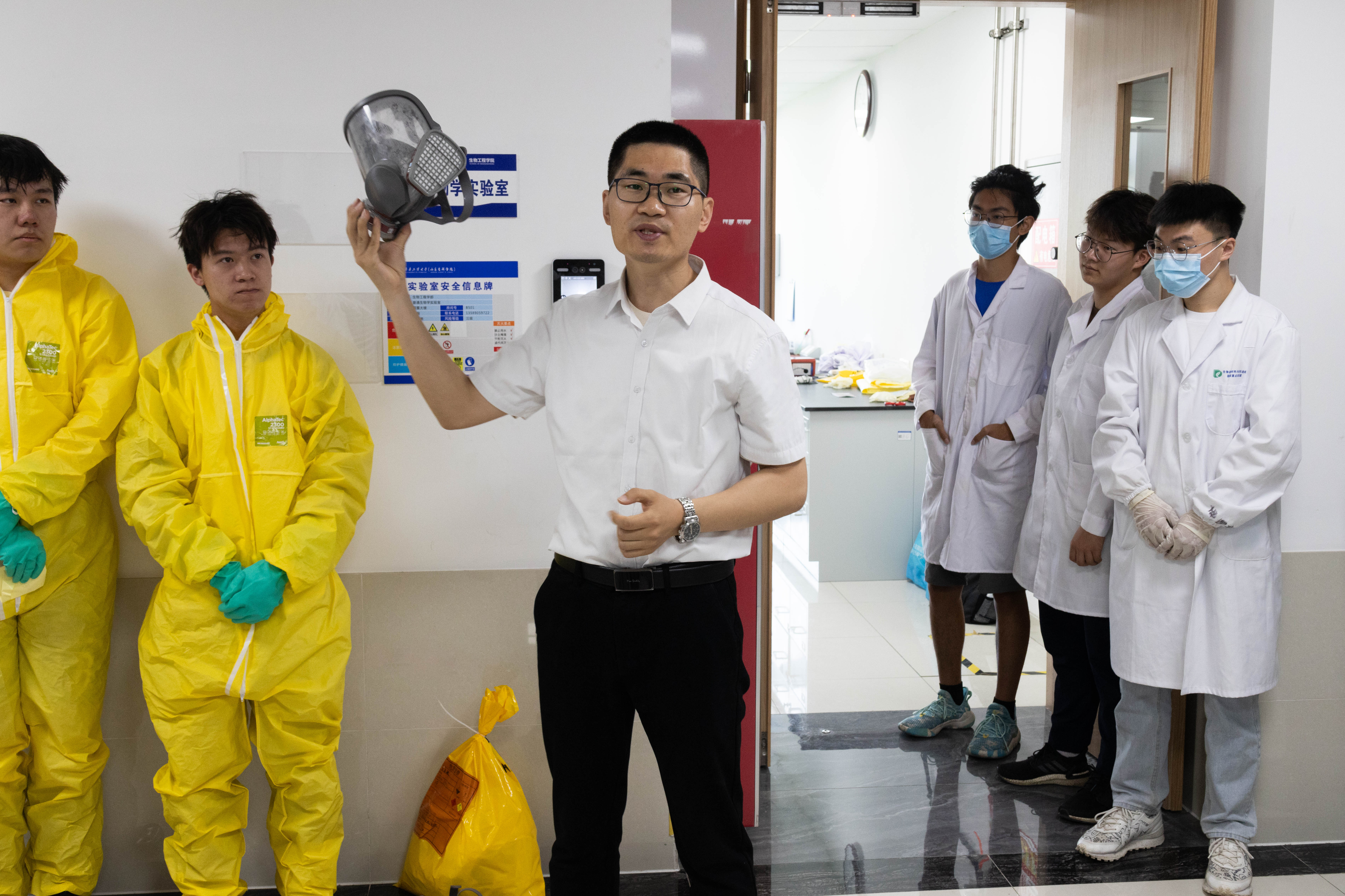 活动伊始,主办方、承办方在2号公教楼202组织了一次全面的安全培训,会议由教务处副处长马烽主持,海尔生物医疗安全培训总监李公海做了“实验室危险化学品安全使用与综合管理暨危化品泄漏灼伤中毒事故应急演练”为主题的报告。李公海总监详细解读了《实验室危险化学品安全管理办法》等相关规章制度,强调了危化品安全管理的重要性,并通过案例分析,让师生们深刻领会到严格遵守安全操作规程的必要性。