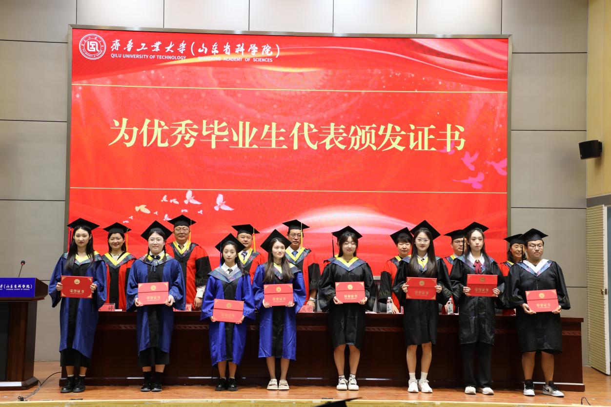 毕业典礼上,副主任李丕武宣读2024届研究生省级、校级优秀毕业生名单,副主任王婷宣读2024届本科生省级、校级优秀毕业生名单,与会领导为他们依次颁发证书。