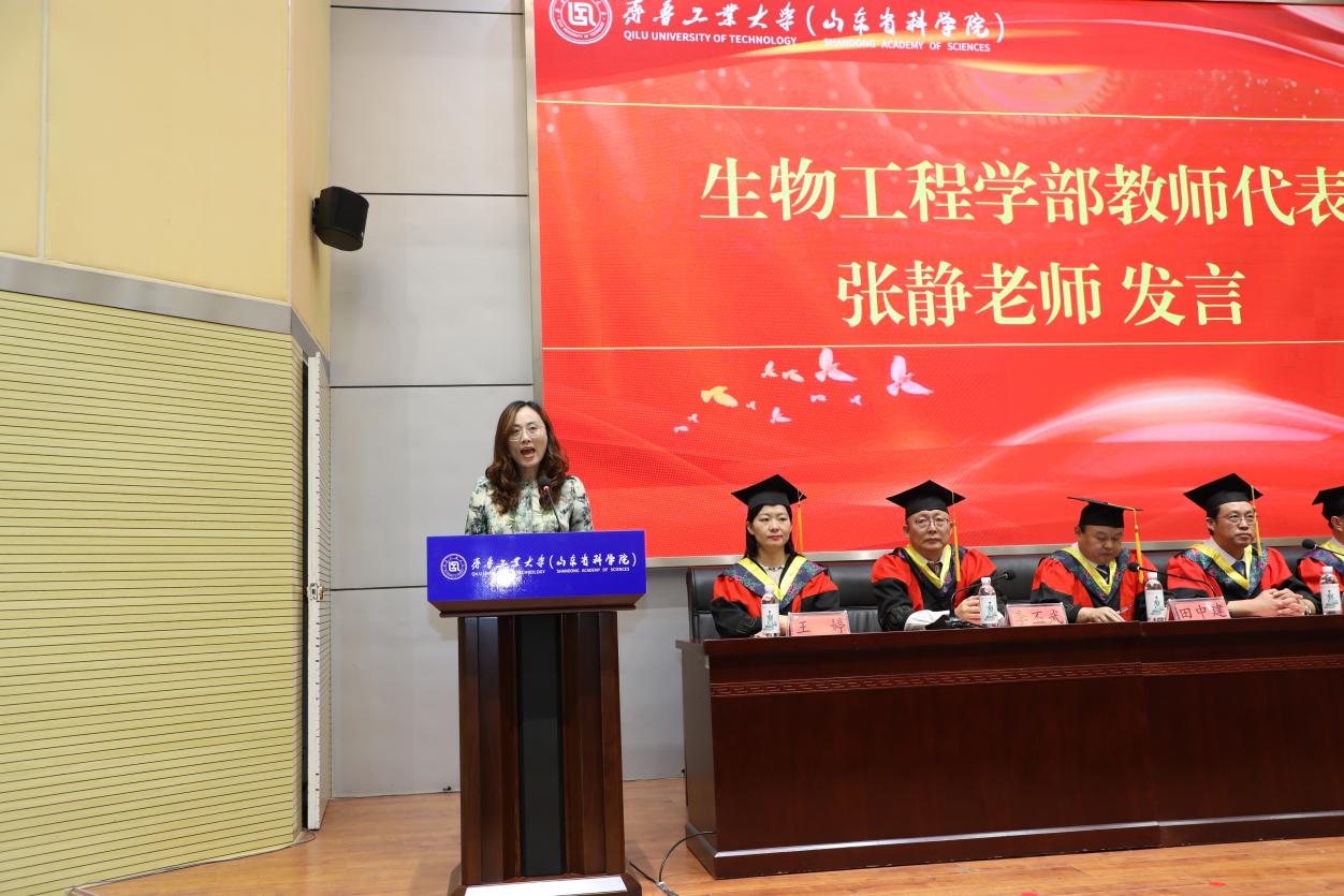 教师代表张静在发言中希望同学们无论选择继续深造,还是奔赴祖国各地建功立业,要始终秉承工大(科院)品格,不惧风雨、勇挑重担,保持开拓创新的精神,用青春的智慧和汗水去创造、去奋斗,努力成为国家和社会的栋梁。