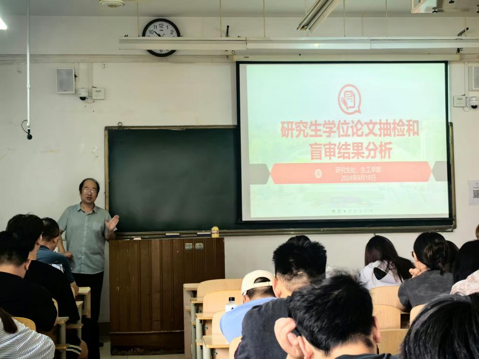 研究生处何福岩老师分享了近几年学校研究生学位论文抽检情况和盲审结果。为全面提高研究生培养质量,保障学位论文水平,我校(院)自2022年起实现学位论文全盲审。从2020年以来,我校(院)研究生毕业论文抽检学科分布比例逐年提升,抽检过程中存在着一些问题。面对之前出现的不足,何老师呼吁毕业生在研究生的最后一年认真打磨毕业论文,把握质量关,为宝贵的三年研究生生涯交上满意的答卷。